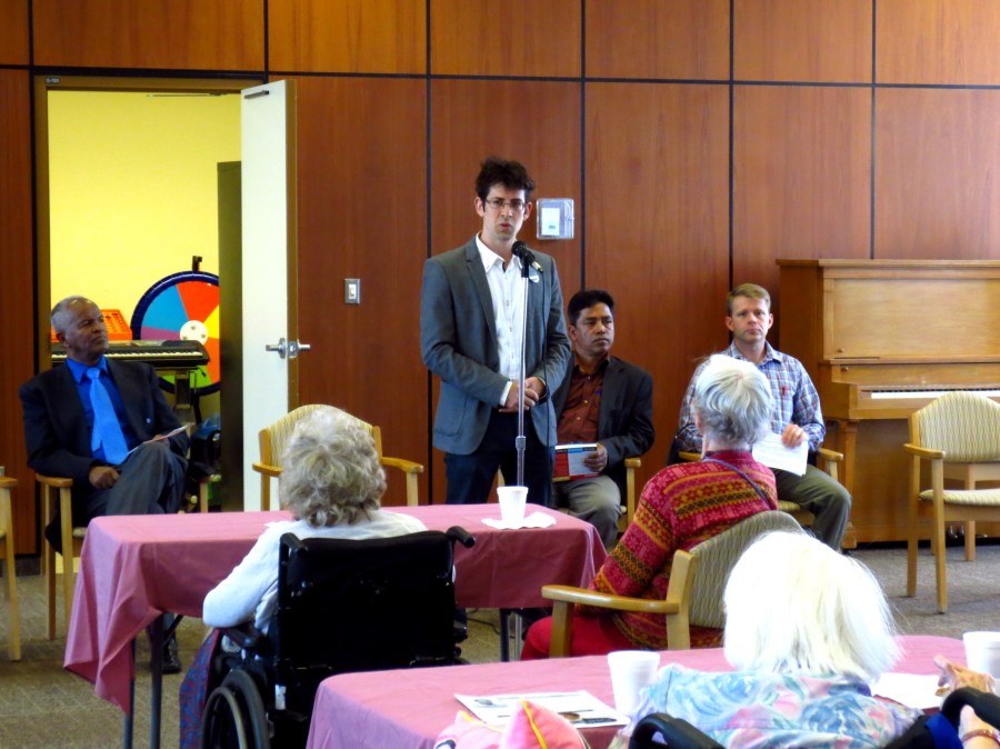 Speaking to residents at the Chester Village Long-Term Care Facility about issues in the ward that impact them.